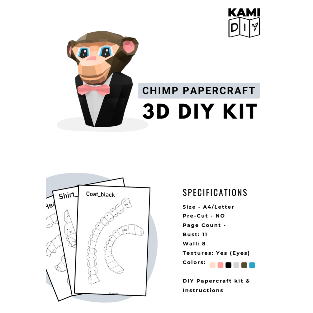 - High-Quality Materials: Designed to be printed on standard A4 or letter-sized paper, the template offers a precise pattern for cutting and assembling your chimp bust.